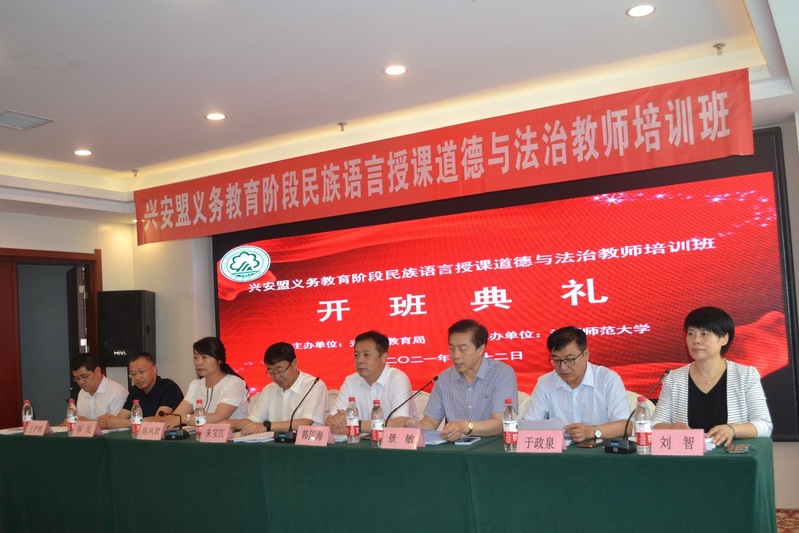 按照教育部教师工作司的统一部署安排,7月12日,必赢线路检测中心作为“三科”统编教材内蒙古教师培训项目承办单位,同时启动2021年兴安盟义务教育阶段民族语言授课学校国家统编中小学道德与法治、语文学科教师以及新入职语文教师培训等五个项目。必赢线路检测中心副校长韩国海,兴安盟教育局党组书记、局长朱宝江,党组成员、副局长陈凤君出席两个开班典礼并讲话。必赢官网教师教育学院院长景敏、党委书记于政泉、副院长韩民以及兴安盟地区相关人员参加开班典礼。教师教育学院院长景敏主持会议。