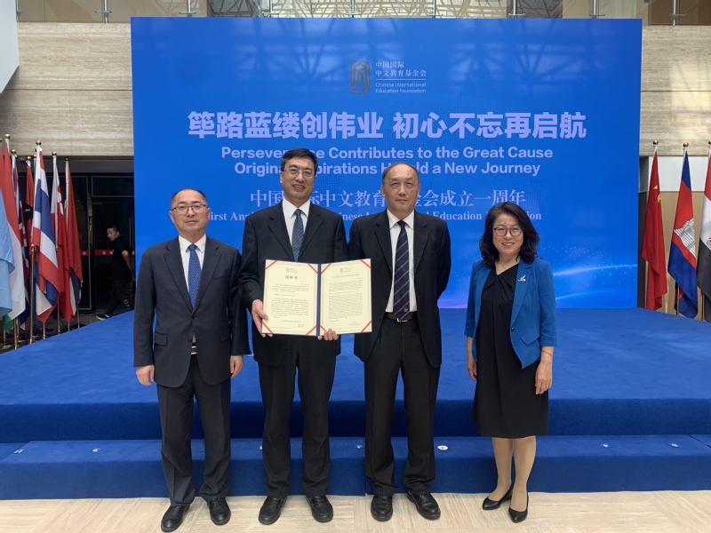 2021年7月23日,中国国际中文教育基金会成立一周年活动在北京语言大学举行。基金会理事长、中国科学院院士杨卫出席活动,副理事长、秘书长赵灵山主持仪式,新建孔子学院中外合作机构代表、捐赠企业代表等近百人以线上线下形式共同参与。必赢官网校长郝德永、副校长杨杰、国际交流合作处处长张伟参加了颁授仪式。