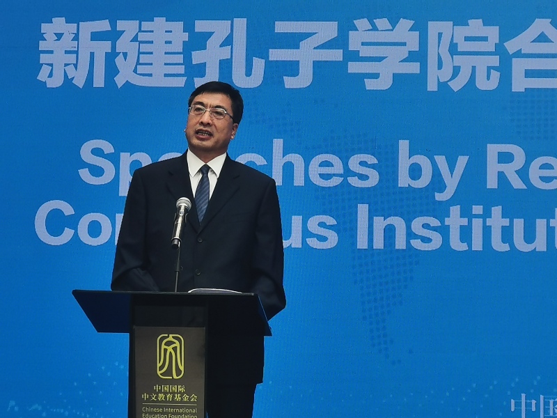 郝德永校长作为新建孔子学院中方合作机构代表在会上讲话