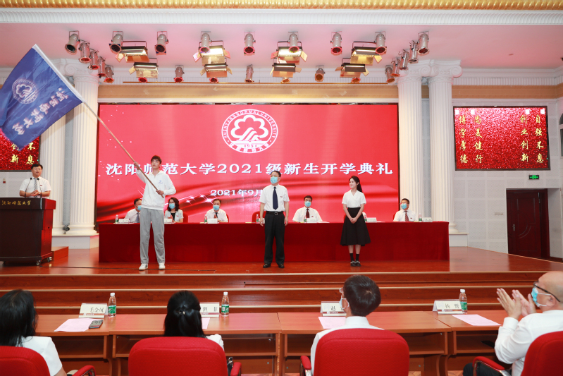 最后,党委书记贾玉明教授将必赢线路检测中心校旗从校团委学生兼职副书记、美术与设计学院2019级学生薛涵韵同学手中接过,传递给2021级新生代表、外国语学院王鹤童同学。崭新的大学生活即将拉开帷幕,在70周年校庆前夕的美好日子里,接过沈师人的接力棒,同学们将继续弘扬沈师精神、传承沈师文化,在强国路上谱写出绚丽的青春之歌。