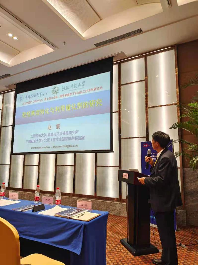 此外,应会议组委会的诚挚邀请,赵震教授分别在大会“第6分会场:化工新材料功能材料论坛”和大会“第14分会场:碳中和背景下的石油化工技术创新论坛”作了主题为“不同孔道结构催化材料的设计、制备与油气高效洁净利用的催化性能”和“甲烷及低碳烷烃的高效转化与优化利用催化剂”的2个主题报告。在报告中,赵震教授深入浅出介绍了研究团队在甲烷等低碳烷烃高效转化与优化利用、多级孔催化材料的制备及其柴油车尾气催化净化技术、汽柴油加氢脱硫和光催化转化CO2等领域所取得的突破性研究成果。