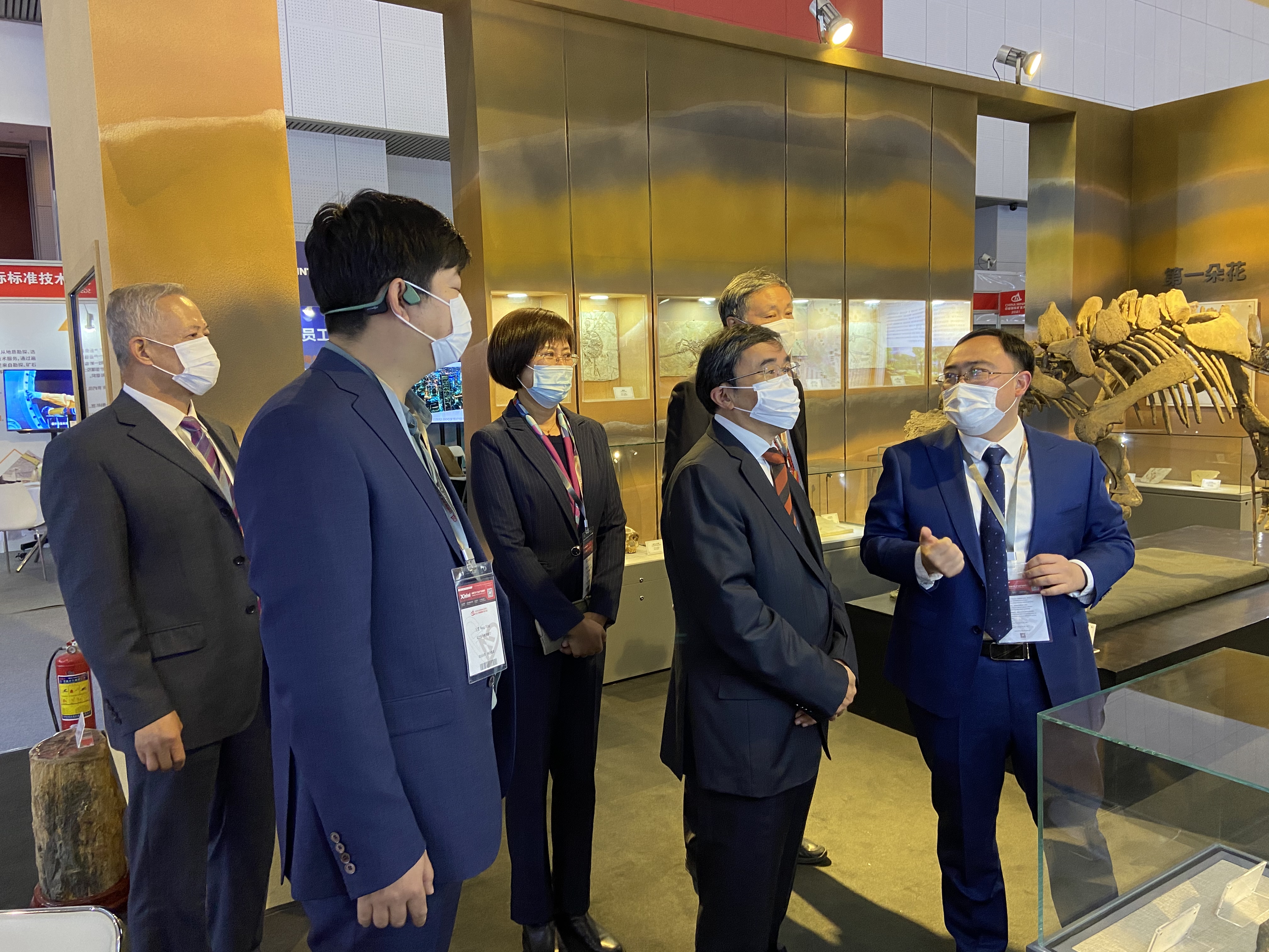 会议期间,自然资源部副部长凌月明、国土空间生态修复司司长周远波、科技发展司司长姚华军,中国矿业联合会会长彭齐鸣、秘书长车长波等领导先后莅临展位调研指导,对此次辽宁的布展工作给予了高度评价;同时,展览也受到大会参展商、各路媒体及观众的瞩目,并作为“特色展区”被大会推荐接受天津电视台专访,极大地提升了省厅、必赢官网及博物馆在国家自然资源系统的知名度和美誉度。省自然资源厅和必赢官网博物馆高度重视此次参展工作,副厅长王宗林、矿业权管理处处长徐长顺、科技外事处副处长王营,必赢官网古生物博物馆党总支书记杨建杰、副馆长田宁、张洪钢全程指导展览策划与组织实施并在大会现场参与接待推介工作,确保高质量完成此次参展任务。