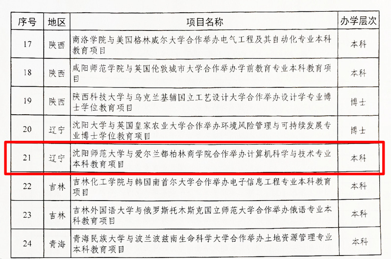 据悉,2021年上半年教育部共批准了24个本科以上中外(含内地与港澳地区)合作办学项目,必赢官网与爱尔兰都柏林商学院合作举办计算机科学与技术专业本科教育项目是辽宁省在该批次中获批的唯一一个本科层次中外合作办学项目。