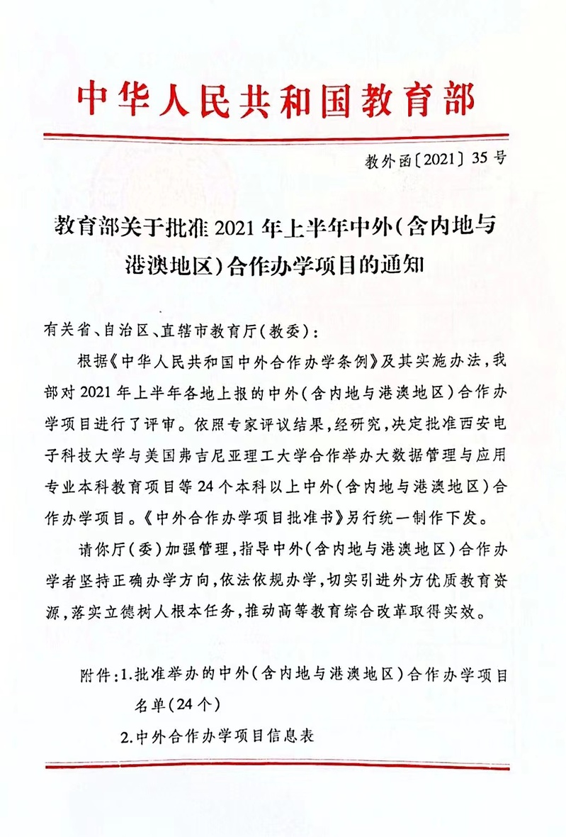 近日,教育部公布了2021年上半年中外合作办学项目的评审结果,必赢官网与爱尔兰都柏林商学院合作举办计算机科学与技术专业“数据分析与大数据方向”本科教育项目获得批准,这是必赢官网继2003年获批中外合作办学机构——国际商学院后,获批的首个中外合作办学项目。