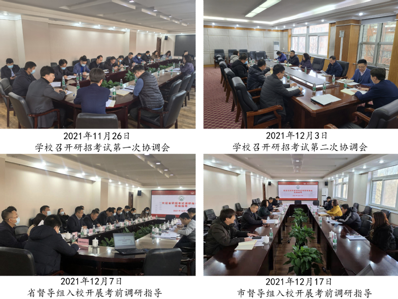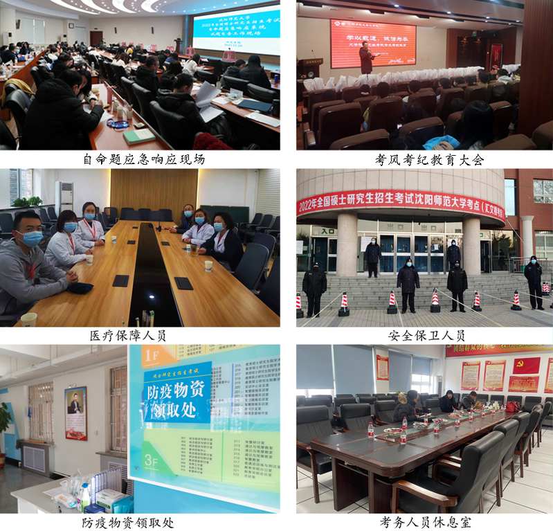 学校先后召开全员性动员、部署、落实会议三次,并分别召开自命题教师、考务人员、后勤保障人员、疫情防控人员、突发事件应急处置人员专题培训会。学校严格落实省研究生标准化考场建设要求,在现有的考试考场设施设备基础上,投入20余万元经费,升级改造了网络视频监控系统,配备人脸识别设备10套,增购了金属探测器、5G手机信号屏蔽器、不间断电源等设备。学校于12月16日起,陆续开展各个环节的实战演练,特别是安检,试卷运送、交接、核查、分发、保管,以及疫情防控、突发事件处理等关键环节反复进行演练。学校严格实施考务人员回避制度,逐一排查;严格落实保密制度,对保密室设施逐一检查;与属地公安机关、消防部门、城管部门对接校园周边安全保障工作;与供暖公司、电力部门对接考试期间供暖和电力保障工作;与移动公司对接考试期间手机信号降频工作;与属地招生考试管理部门对接,落实第一监考教师和相关考务工作等。