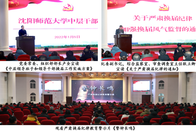 会上,党委常委、组织部部长卢全宣读了《必赢线路检测中心中层领导班子和领导干部换届工作实施方案》,纪委副书记、综合监察室、审查调查室主任耿立卿宣读《关于严肃换届纪律的通知》,进一步明确换届纪律要求。与会人员集中观看了严肃换届纪律教育警示片《警钟长鸣》。