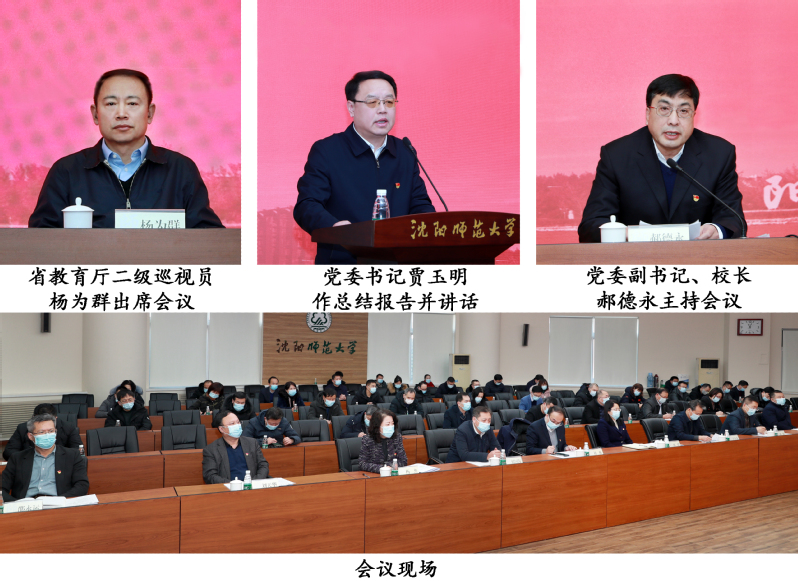 贾书记指出,要全面总结运用好党史学习教育的创新做法和典型经验,着力构建党史学习教育常态化、长效化机制建设,不断巩固和拓展党史学习教育成果。一是持之以恒学党史。要坚持将学习党史与学习党的十九届六中全会精神相结合,与学习新中国史、改革开放史、社会主义发展史相贯通,持续深入学习百年党史,大力弘扬伟大建党精神,筑牢忠诚捍卫“两个确立”、坚决做到“两个维护”的思想根基。二是持续深入悟思想。持续在学懂弄通做实习近平新时代中国特色社会主义思想上下功夫,从党的创新理论中找方法、找思路、找对策,以思想的提升推动事业发展的进步。三是坚持不懈办实事。建立“我为师生办实事”长效机制,强化责任意识和担当意识,持续推进破解历史遗留问题和师生关切的现实问题,高质量完成办实事项目清单,解决好基层的困难事、师生的烦心事。四是锐意进取开新局。深入学习贯彻省第十三次党代会精神,提振干事创业的士气和劲头,锚定“双一流”建设目标,全面提升人才培养质量与科技创新能力,为新时代辽宁全面振兴、全方位振兴贡献沈师力量,以实际行动迎接党的二十大胜利召开。