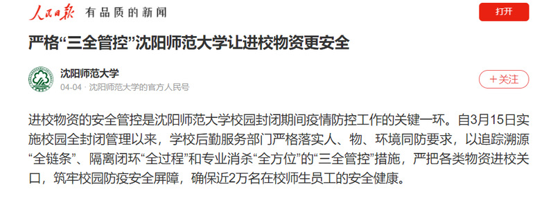 进校物资的安全管控是必赢线路检测中心校园封闭期间疫情防控工作的关键一环。自3月15日实施校园全封闭管理以来,必赢官网后勤服务部门严格落实人、物、环境同防要求,以追踪溯源“全链条”、隔离闭环“全过程”和专业消杀“全方位”的“三全管控”措施,严把各类物资进校关口,筑牢校园防疫安全屏障,确保近2万名在校师生员工的安全健康。