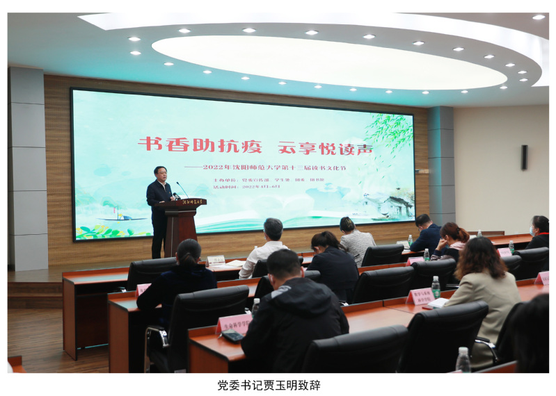 党委书记贾玉明为本届读书文化节致开幕辞。他从为什么要读书、读什么书、怎么读书、如何坚持读书四个层面与师生分享读书收获与感悟,激励广大青年学子珍惜当下大好时光,培养读书兴趣,掌握阅读方法,刻苦严谨治学,以书香滋养成长过程,成就幸福人生。