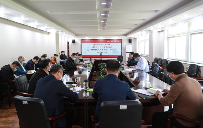 党委书记贾玉明领学了习近平总书记关于疫情防控的重要论述,传达了近期省委常委会关于高校疫情防控工作的部署要求。
