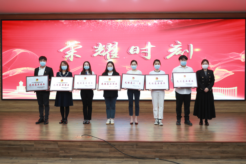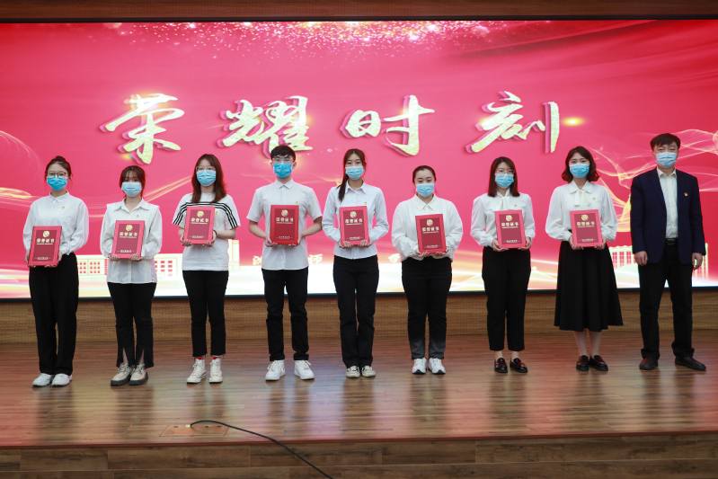 校团委书记耿家娜为“先进团委”颁发奖牌