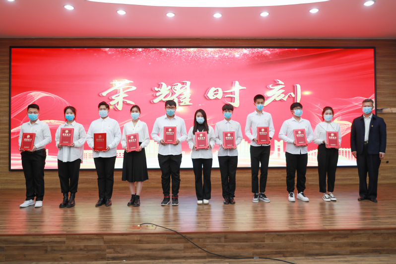 研究生院直属党支部书记卢景杨为省、市级优秀团员和优秀团干部代表颁发奖励证书