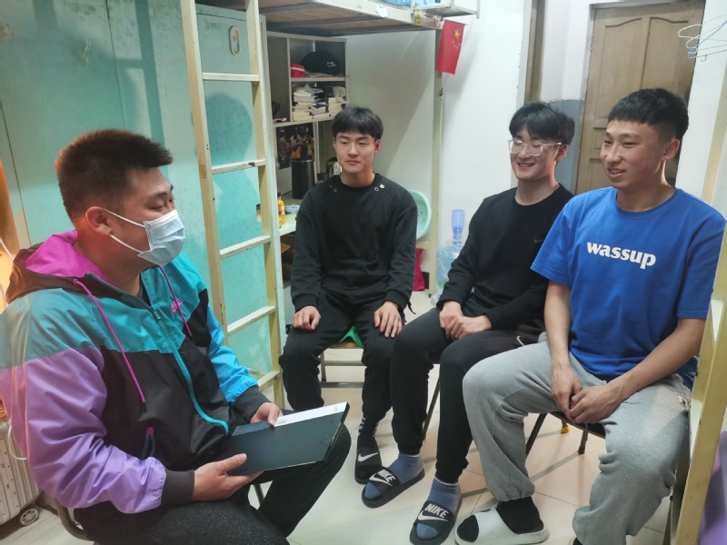 “工作19年后再与学生们同吃同住,是件幸福的事情”,这是他驻楼抗疫后最常说的一句话。有一种安心,叫做临时党支部+网格化。既是一号楼党支部书记、楼长,又是副书记的他,坚决贯彻学校党委部署,在入住11家学院782名男生的南区一号楼后,迅速组织40名党员建立网格化防控体系,同时又组织本学院481名学生建立49个网格组。有一种护佑,叫做“办实事,解生忧”。得知一名学生罹患恶性肿瘤后,在公共交通受阻的情况下,他与交警等部门多方协调,学生得以顺利返乡手术。他背着脚伤的学生一口气爬到五楼,又化身大白,奔走在送学生就医的路上。他在“办实事,解生忧”中找到了作为辅导员的幸福感!