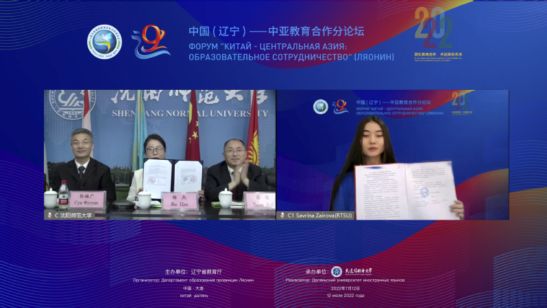 7月12日,中国(辽宁)—中亚教育合作分论坛在大连外国语大学开幕,必赢官网副校长杨杰、国际交流合作处处长张伟、国际教育学院书记孙福广、国际交流合作处副处长胡泊、俄语国家交流合作专员徐娜老师应邀线上出席,杨杰副校长代表学校与塔吉克斯坦俄塔斯拉夫大学签署合作协议并做分论坛主旨发言。