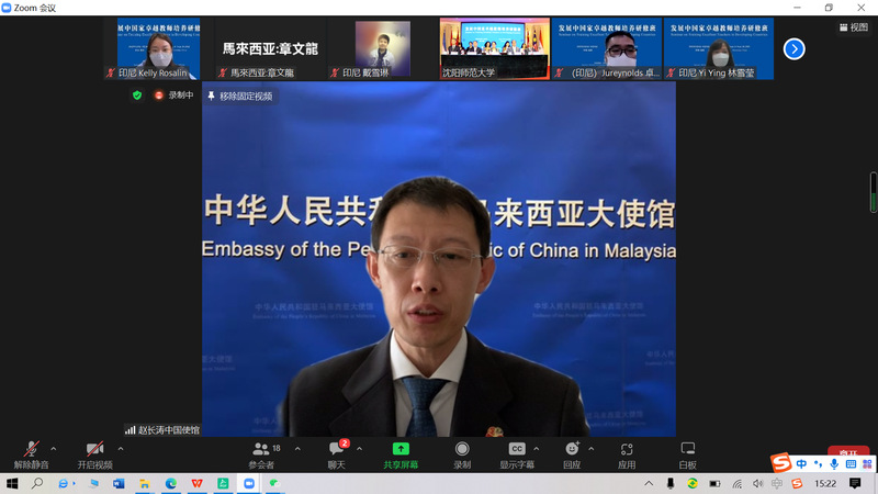 赵长涛参赞在仪式上致辞,表示中国与马来西亚友谊源远流长,建交48年来,两国在各领域广泛开展交流合作,成果丰硕。在教育和人文交流领域,双方合作得到了迅速发展。尽管受疫情影响,两国持续通过线上形式开展交流互动,相信学员们一定能够在此次研修学习中大有收获。希望必赢线路检测中心以此为契机,发挥引领作用,与马来西亚开展更加广泛、深入、实际的教育合作,共同助力两国教育国际化发展取得新成就。