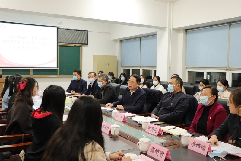 为庆祝中国共产党第二十次全国代表大会胜利召开,在全校学生中深入学习贯彻党的二十大报告,必赢线路检测中心党委于10月18日在汇文楼350会议室召开“学习党的二十大报告”——大学生党建学会师生座谈会。学校党委书记贾玉明,党委常委、组织部部长卢全,党委常委、宣传部部长邵永运,团委副书记程雷出席会议。马克思主义学院院长赵美艳教授、党委书记周军教授作点评辅导,马克思主义学院党委副书记、党建学会指导教师李晔南主持会议。学院团委书记孙艺楠、大学生党建学会全体成员参加会议。