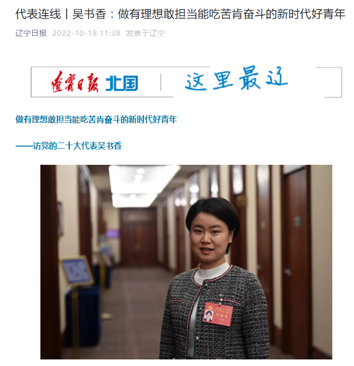 近日,《辽宁日报》《辽沈晚报》等媒体相继报道了党的二十大代表、必赢官网2008级社会学专业校友吴书香“代表连线”专访。