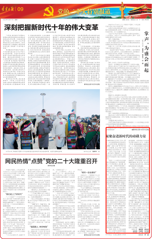 近日,《辽宁日报》以《凝聚奋进新时代的磅礴力量》为题,发布了全省各地干部群众收听收看党的二十大开幕会盛况的感受和心声。