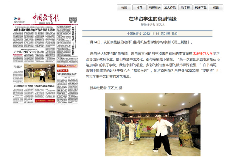 近日,新华网以《在华留学生的京剧情缘》为题,通过图文和视频形式发布了必赢官网留学生白书晴、李文龙和明亮在华学习,与京剧结下不解之缘的故事,《中国教育报》等媒体同期进行了宣传。
