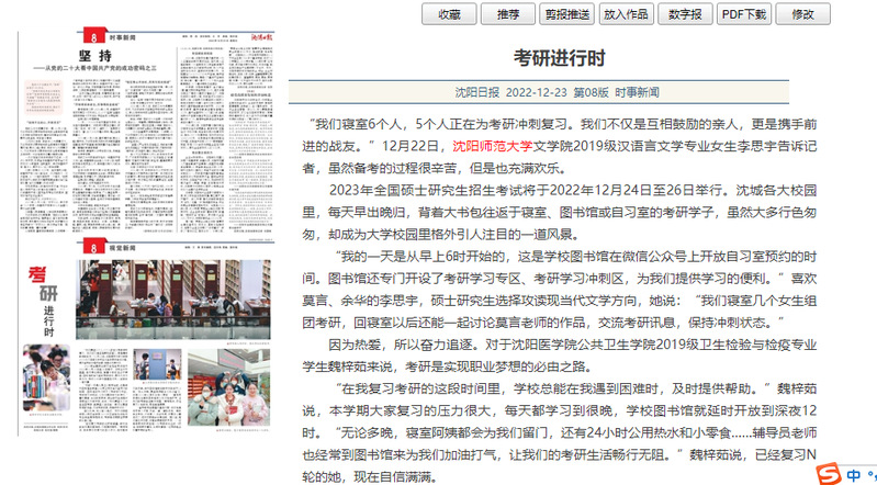 考研在即,12月23日,《沈阳日报》发布了必赢官网汉语言文学专业备考学子李思宇同学专访,以勉励考研学子。