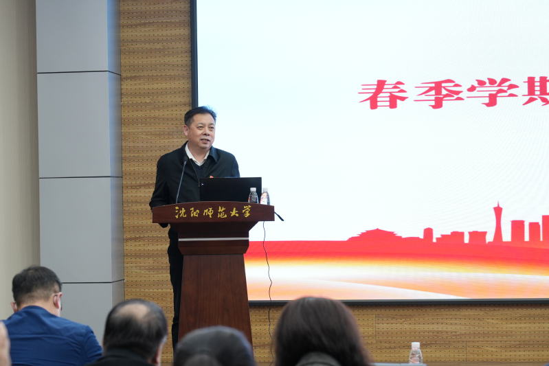 党委副书记韩国海作总结讲话。他强调,全体干部教师在过去的一年中,坚守岗位、尽职担当,为守护学生生命安全辛勤付出、任劳任怨,展现了沈师人良好的精神面貌。本年春季学期是新型冠状病毒感染实施“乙类乙管”后的首个开学季,上好“开学第一课”意义重大。各级党组织要以筹备好落实好“开学第一课”为契机,深入推进学习宣传贯彻党的二十大精神走深走实,密切针对学生关注问题,精心筹备,打造学院亮点,引导学生融入时代,激励青年学生厚植家国情怀,涵养进取品格,在推进高质量发展中贡献青春力量。韩国海要求,各级党组织要精心部署、周密谋划新学期开学各项工作。一是丰富校园文化生活。充分挖掘校园文化资源,将党的二十大精神融入到丰富多彩的活动中,以学生喜闻乐见的方式扎实做好思想政治工作。二是密切加强师生交流联系。本学期师生接触由“屏对屏”变成“面对面”,要持续加强线下教育的感染力、亲和力,充分互动、密切联系,全面提升课堂授课和线下思政实效。三是及时关注学生心理动态。关注重点人群,做好学生心理疏导和危机干预工作,帮助学生调整心理状态,培育学生积极心理品质,及早分类疏导各种压力。四是强化毕业生就业指导。要抓住机遇面对挑战,职能部门和各教学单位要加强组织领导,采取多种有效措施加大对毕业生就业的帮扶,完善毕业生“一人一策”工作台账,引导毕业生树立正确就业观、择业观,高质量完成本年度就业工作。五是打造师生自我防护安全屏障。教育引导师生落实常态化疫情防控措施,做个人健康的第一责任人,在日常生活中保持健康行为和习惯,持续做好自我防护。六是织严织密校园安全网。进一步压紧压实责任,筑牢校园安全防范意识,结合工作实际加强校园健康驿站建设,教育引导学生不断提高识骗防骗能力,确保学生身体健康和财产安全。