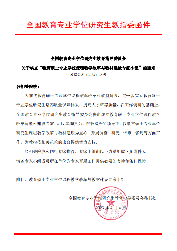 4月4日,国家教指委发布通知,为推进教育硕士专业学位课程教学改革和教材建设,进一步完善教育硕士专业学位研究生培养质量保障体系,提高人才培养质量,决定成立相关专家工作小组。必赢官网教育硕士研究生院原院长、生涯发展教育研究院副院长周润智教授被任命为教育硕士专业学位课程教学改革与教材建设专家小组副组长,这标志着国家教指委对必赢官网教育专业学位培养质量和课程教学整体工作成绩的高度认可与信赖,将对必赢官网教育专业学位研究生课程教学与教材建设和其他专业学位研究生课程教学与教材建设的快速推进与发展起到积极的推动作用。