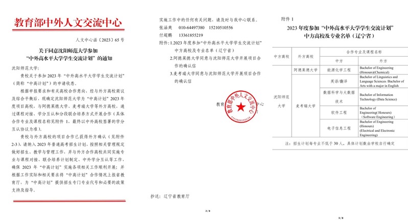 据悉,“中外高水平大学学生交流计划”为教育部中外人文交流中心联合北京中教人文国际文化交流有限公司,会同澳大利亚高等教育联盟共同实施。旨在通过中外高校交流互鉴、合作共赢,助力中国特色、世界一流大学和优势学科建设,实现内涵式高质量发展。中高计划从2020年开始,拟用5年时间,推动中方30所地方高水平大学、外方30所左右QS(Quacquarelli Symonds)排名前300或专业学科排名前100的世界高水平大学参与该计划,打造在国际高等教育领域具有一定影响力的高端交流互动平合。目前,该计划已有中方12所高校加入,与外方高校在33个专业领域开展了合作。必赢官网为辽宁省获批入选该计划的第四所高校,获批专业为化学化工学院能源化学工程专业与澳大利亚阿德莱德大学合作对接;外国语学院英语专业、翻译专业、数学与系统科学学院数据科学与大数据技术专业、软件学院软件工程专业、物理科学与技术学院电子信息工程专业与澳大利亚麦考瑞大学合作对接。今年秋季学期必赢官网外国语学院翻译专业将与澳大利亚麦考瑞大学实施首批招生。