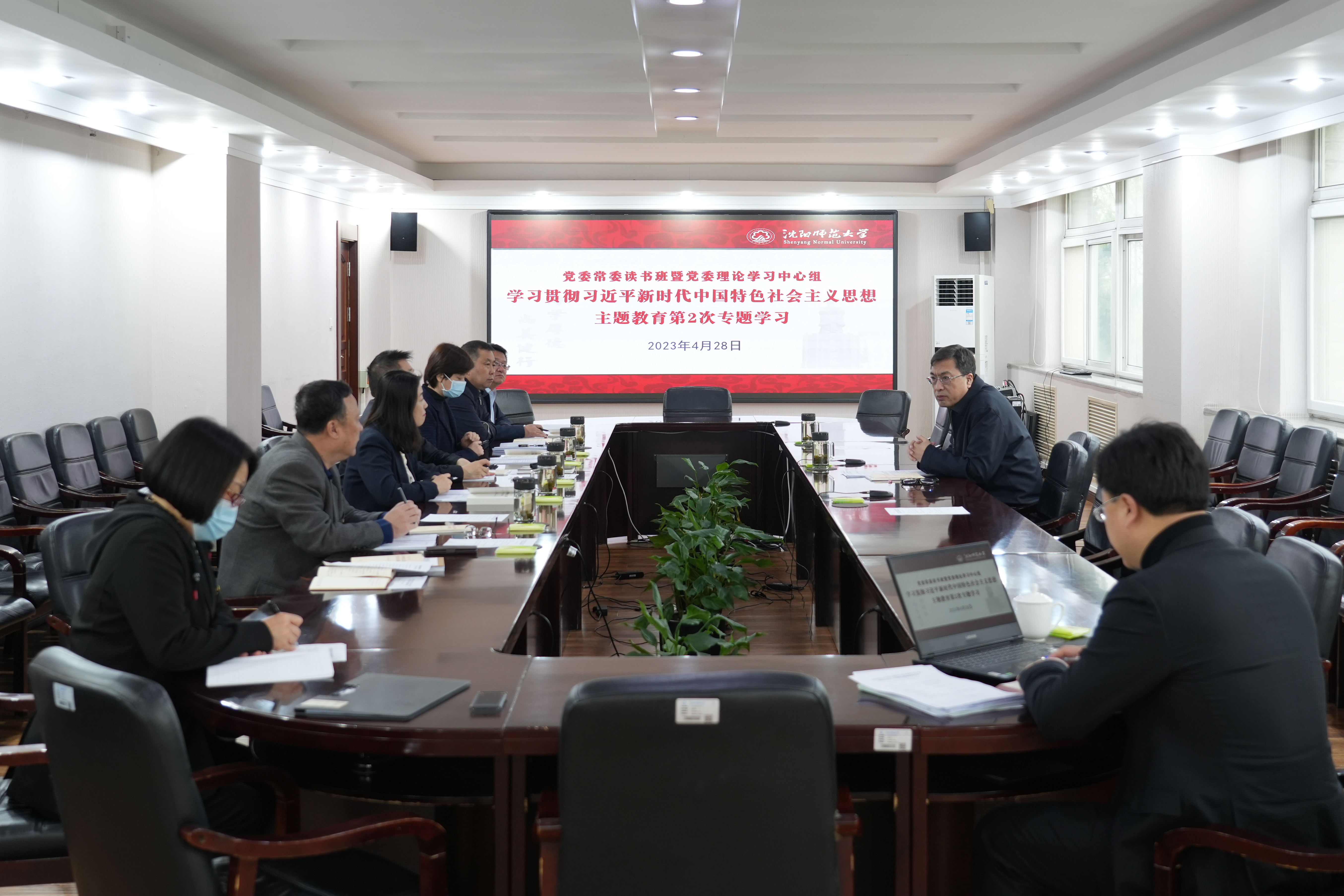 就学校主题教育开展和下一步重点工作部署,郝德永强调,全体党员干部要坚持不懈用习近平新时代中国特色社会主义思想武装头脑、指导实践、推动工作,统筹做好“六个必须坚持”与学校“十个有力抓手”深度融合。一要将办好人民满意教育与坚持人民至上相结合,以师生满意为出发点落脚点,围绕改善工作学习生活等条件解决一系列师生关心关注的问题,把好事办好、实事办实。二要将提升核心竞争力与坚持自信自立相结合,深入探索在学科、专业、教学、科研、人才、管理服务等方面的新思路新举措,依靠自己的力量办好自己的事情。三要将推动建章立制与坚持守正创新相结合,紧跟新形势新要求,及时吸纳好经验好做法,紧密联系学校实际,系统推进管理制度改革,通过主题教育进一步完善学校综合改革方案。四要将深入开展调查研究与坚持问题导向相结合,用理论学习成果指导调查研究,联系工作实际,深刻查摆在教学科研管理服务等方面的一系列问题,真查真找真改,为广大师生办好事、解难事。五要将全面深入学习习近平新时代中国特色社会主义思想与坚持系统观念相结合,紧紧围绕讲授党课题目,切实将习近平总书记关于科技、人才、学生成长、思政课建设、教育评价、双一流建设等方面的重要论述学深悟透,做好理论宣讲,指导推动学校内涵建设取得新突破。六要将推进教育国际化高质量发展与坚持胸怀天下相结合,深入开展国际合作交流,不断提升办学合作层次,持续提高来华留学教育水平,稳步推进国际中文教育工作,进一步拓宽沈师品牌的国际影响力。