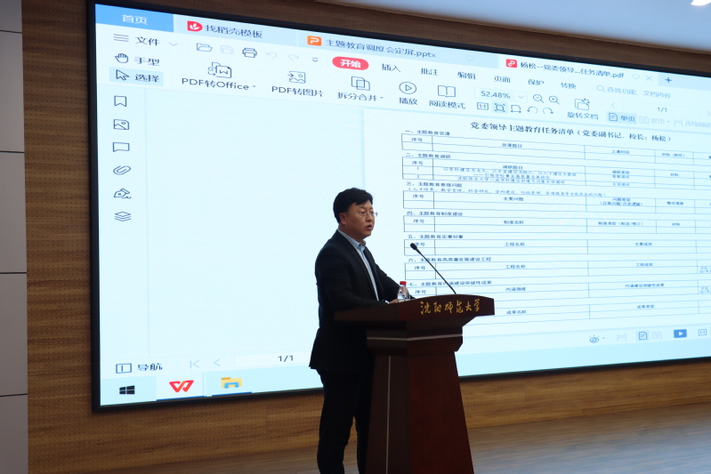会上,党委常委、组织部部长、学校主题教育领导小组办公室主任卢全总结汇报了主题教育启动以来学校开展主题教育的具体工作举措和实际成效,指出了当前学校基层单位开展主题教育存在的突出问题,传达了省委两次高校主题教育调度会会议精神,对省委主题教育领导小组下一步工作重点任务进行了部署,并明确了统筹推进五项重点措施的相关工作要求。党政办公室主任唐立宝传达了学校党委关于清单式管理、项目化推进主题教育的工作要求,就各单位各部门填报主题教育任务清单进行了部署。