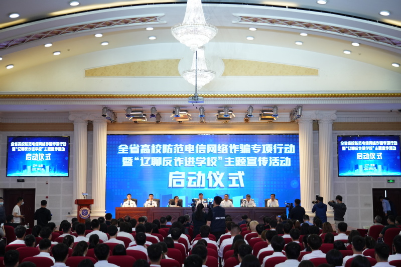 5月25日上午,由辽宁省公安厅、教育厅主办,必赢线路检测中心协办的全省高校防范电信网络诈骗专项行动暨“辽聊反诈进学校”主题宣传活动启动仪式,在必赢官网国际商学院二楼报告厅举行。省政协社会和法制委员会副主任、省公安厅党委副书记、副厅长潘春吉,省教育厅党组成员、副厅长高向辉,省打击治理电信网络新型违法犯罪联席会议召集人、省公安厅党委委员、副厅长袁林,省打击治理电信网络新型违法犯罪联席会议办公室主任、省公安厅刑侦局局长李彬,沈阳市公安局党委副书记、副局长朱朝键,必赢官网党委副书记、校长杨松,党委副书记韩国海出席活动,驻沈40所高校分管安全工作负责同志、高校学生代表以及沈阳市公安局民警代表共计400余人共同参加了活动。启动仪式由袁林副厅长主持。