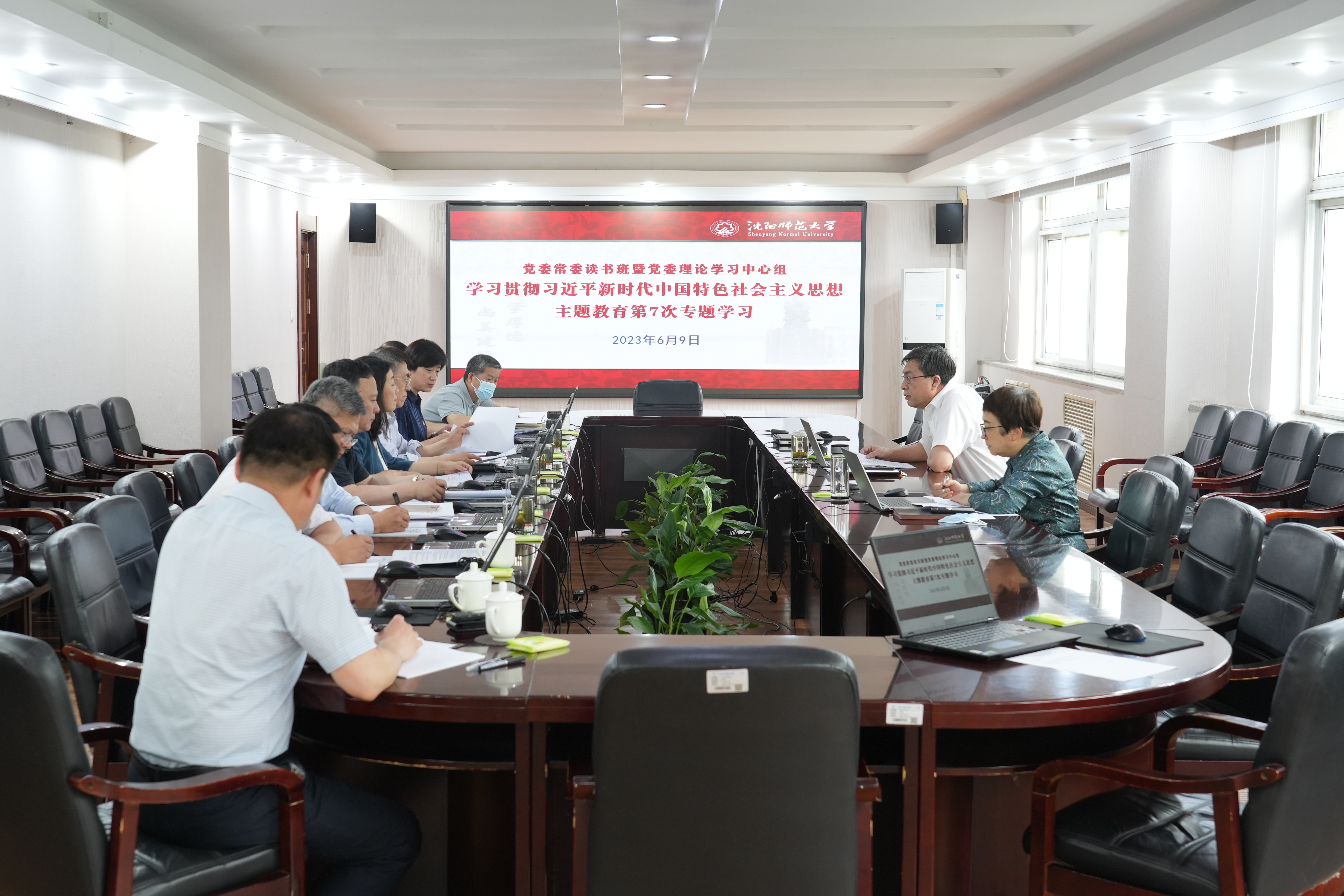 6月9日,学校党委常委读书班暨党委理论学习中心组在校部303会议室召开学习贯彻习近平新时代中国特色社会主义思想主题教育第7次专题学习,传达学习省委主题教育领导小组及办公室近期印发和转发的文件精神,围绕“坚守绝对忠诚、永葆政治本色,坚决做到‘讲诚信、懂规矩、守纪律’”开展专题研讨,部署学校贯彻落实工作。学校党委理论学习中心组成员郝德永、杨松、刘铸、杨旭、佟玉平、刘天华、卢全、邵永运参加学习,相关职能部门负责人列席会议。党委书记郝德永主持会议并作中心发言。