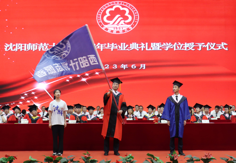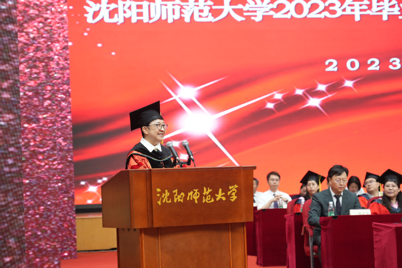 杨松校长向毕业生同学提出了四点殷切希望。一是德为人先,熔铸品德,抒写拼搏的人生乐章。立德是树人的前提,德行为才华作指引。她希望同学们要坚守底线思维、遵守社会公德、严守职业道德、弘扬家庭美德、涵养个人品德,要学会以诚敬之心与他人相处,在合作与交流中碰撞出智慧和友谊、在竞争与协作中展现才华和境界,实现共赢共生、共同进步,做知行合一、德才兼备的优秀公民。二是学为人师,追求卓越,展现沈师优良风范。知者不惑,仁者不忧,勇者不惧。大学贵在有大师,良师是同学们全面成长的引路人和工程师。她希望同学们把终身学习当成一种精神追求、人生态度和生活方式,锻造追求真理、追求卓越、突破自我、超越自我的奋斗精神,遇到困难时要迎难而上,勇于担当,勤于历练,努力成为新知识的创造者、新技术的发明者、新领域的拓荒者。三是行为世范,不忘初心,担起辽宁全面振兴重任。拳拳思报国,处处是乡关。当前,辽宁全面振兴新突破三年行动已经全面启动,历史将会记录每一位奋斗者。她希望同学们以优秀校友为榜样,积极响应辽宁省委、省政府的号召,切实把自己的人生规划与辽宁经济社会发展紧密结合起来,充分拓展创新创造新动能,努力投身到辽宁新一轮振兴发展之中,践行对国家的责任和对社会的担当,在辽宁振兴新突破的浪潮中大放异彩。四是志在有为,高扬理想,肩负民族复兴使命。征程万里阔,奋斗正当时。中华民族的伟大复兴需要青年人担负起继往开来的重任。她希望同学们在工作中本着思必求新,理必求真,事必求实,言必求信,行必求果的态度,励精图治、开拓进取,在筑梦追梦圆梦的征程中坚守自己的精神家园,不负十几年的艰辛求索,勇担家国天下重任。