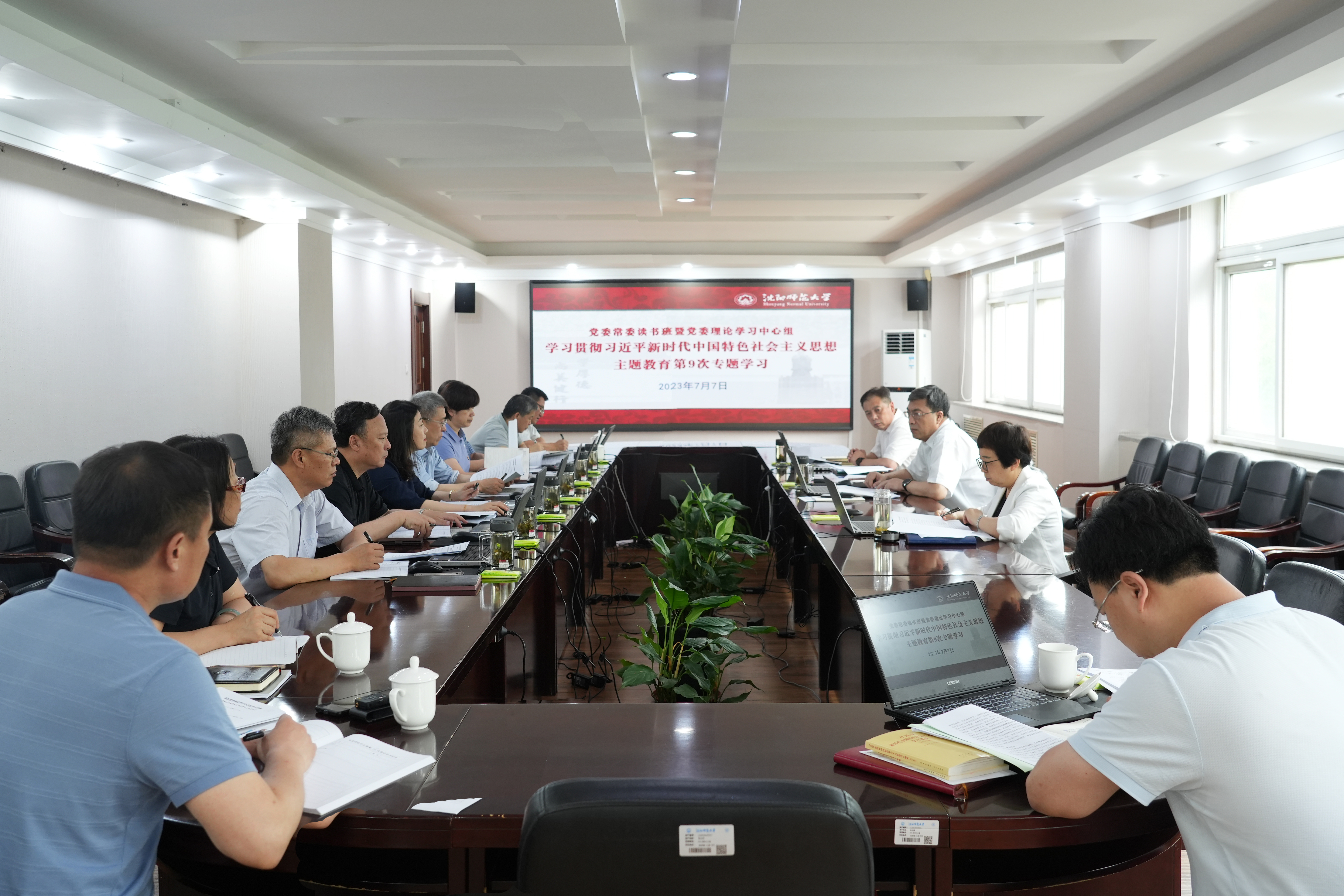 7月7日,学校党委常委读书班暨党委理论学习中心组在校部303会议室召开学习贯彻习近平新时代中国特色社会主义思想主题教育第9次专题学习,传达学习习近平总书记在广东、河北、陕西、内蒙古等地考察时的重要讲话精神,传达蔡奇同志在《习近平著作选读》第一卷、第二卷出版座谈会上的讲话精神及省委相关文件精神,围绕“破解矛盾问题、防范化解风险,营造高质量发展良好环境”开展专题研讨,部署学校贯彻落实工作。学校党委理论学习中心组成员郝德永、杨松、韩国海、刘铸、杨旭、佟玉平、刘天华、卢全、邵永运参加学习,相关职能部门负责人列席会议。党委书记郝德永主持会议并作中心发言。