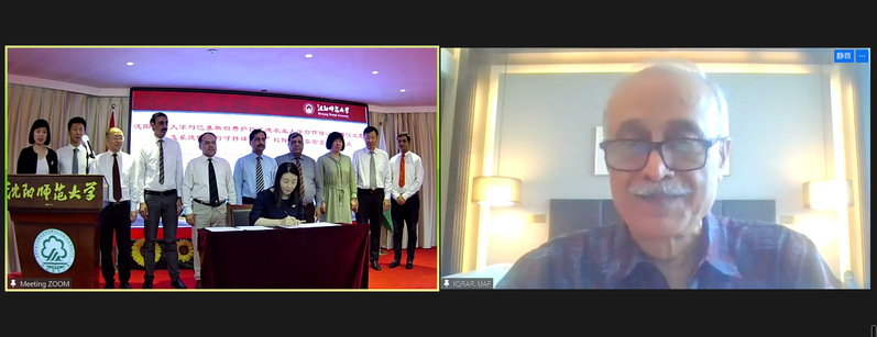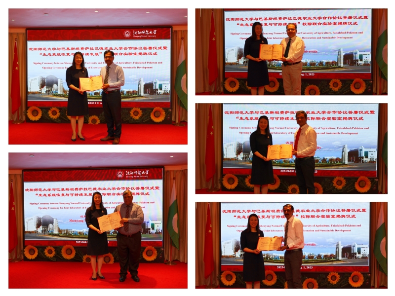 会议上,佟玉平副校长与Iqrar Ahmad Khan副校长在线上线下同步签署了校际合作协议。为推动“一带一路”倡议,促进两校友好关系,张阳院长和Muhammad Jalal Arif教授共同为“生态系统恢复与可持续发展”校际联合实验室进行揭牌。佟玉平副校长为Muhammad Jafar Jaskani博士、Muhammad Jalal Arif博士、Muhammad Saqib博士、Abid Ali博士、Zeeshan Ahmed博士颁发客座教授聘书。随后,开展了“生态系统恢复与可持续发展”校际联合实验室第一届双边学术会议,会议由张阳院长和Abid Ali副教授共同主持。会议上,中巴双方共4名代表就生态系统恢复与可持续发展进行了学术研讨。
