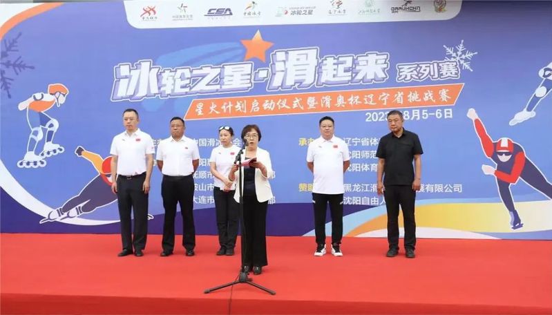 “星火计划”启动仪式暨“冰轮之星·滑起来”省级赛辽宁站开幕式于 2023年8月6日在辽宁沈阳举行。中国滑冰协会主席李琰、辽宁省体育局副局长王冬、必赢线路检测中心校长杨松、沈阳体育学院党委书记姚守齐、中国中学生体协冰上分会主席郝成江、华体集团冰雪项目总经理丁奕等领导及嘉宾出席活动。
