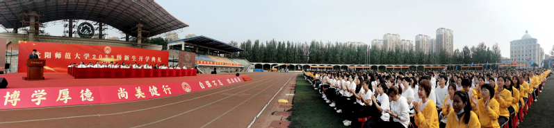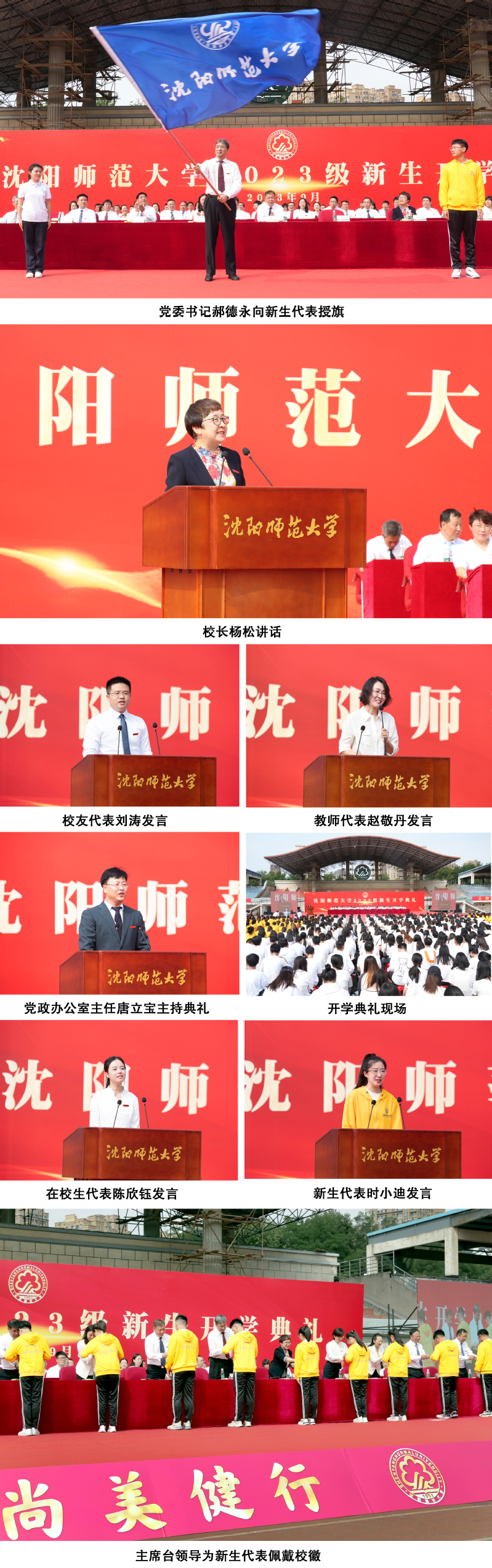校长杨松教授在开学典礼上讲话。在这个“两新相知”的日子,她代表学校全体师生员工向来自全国各地的6168名本科生、1513名研究生和来自世界18个国家的104名留学生表示热烈欢迎,并向全体新生分享了怎样度过大学时光、如何做好人生规划的“三点思考”,鼓励同学们赓续沈师精神、传承沈师校训、领悟大学真谛,志存高远、不负青春。