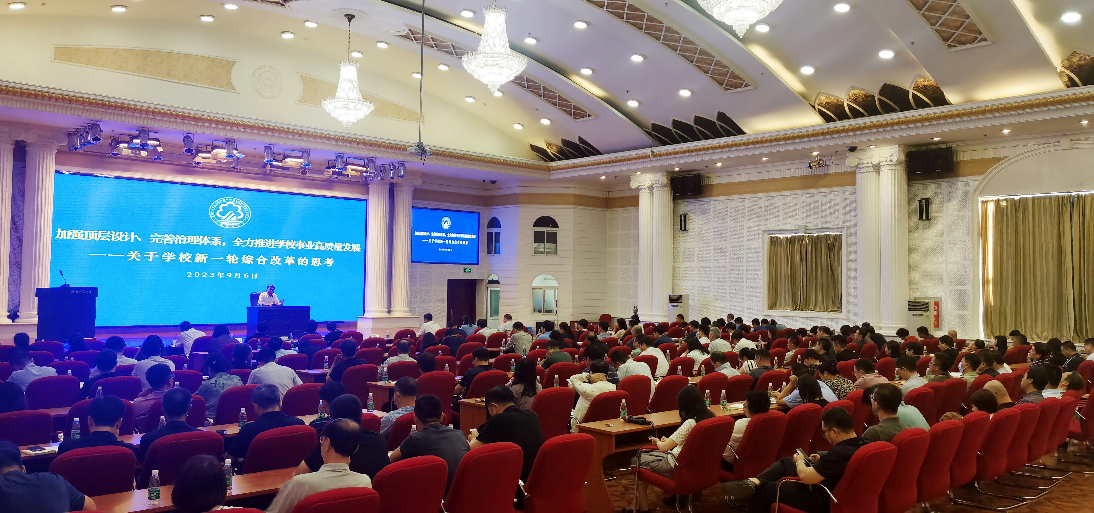 党委书记郝德永对上半年各单位各部门推进本职工作,以及全体干部职工坚守岗位、服务师生和学校发展建设所取得的突出成果表示感谢。围绕下半年重点工作部署,郝德永作题为《加强顶层设计、完善治理体系,全力推进学校事业高质量发展——关于学校新一轮综合改革的思考》的报告。