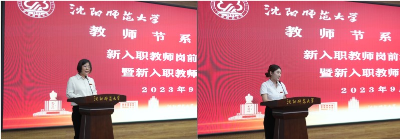 会上,生命科学学院教师、中国科学院沈阳应用生态研究所博士后郑甜甜,软件学院辅导员、华东师范大学硕士研究生赵江南依次代表新入职教师发言,表达了即将走上教师岗位的激动与喜悦之情,同时也深感责任重大,坚定了立足岗位职责为学校发展贡献力量的决心。郑甜甜代表新入职教师表态,在新的工作岗位上,将厚植育人情怀,积极发挥专业技术优势,努力提高教学科研能力,全身心投入教育事业,全力推动学校高质量发展,助力辽宁振兴发展。赵江南代表新入职辅导员、管理以及教辅人员表态,在今后的工作中,将尽快转变角色,坚持学习,敏于求知,锤炼新本领,以事业为上,主动奉献,展现新担当、新作为,为沈师发展贡献力量。