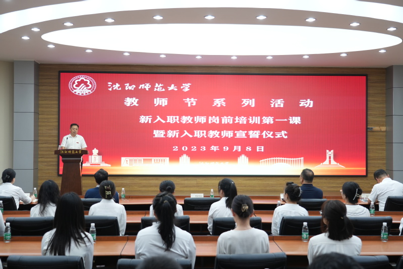 最后,学校党委副书记韩国海为新入职教师讲授岗前培训第一课。他首先代表学校向新入职的青年教师表示感谢和欢迎,从四个方面对新入职教师提出勉励。一是常怀忠诚之心,坚定理想信念。不断深入学习贯彻习近平新时代中国特色社会主义思想,增强“四个意识”,坚定“四个自信”,坚决做到“两个维护”。强化责任担当,求真务实,为党育人,为国育才,坚守意识形态阵地。二是珍惜立业平台,助力学校发展。希望各位新入职教师尽快进入角色、加入团队、融入集体,秉承“博学厚德 尚美健行”的沈师校训,发扬“自强不息,创业创新”的沈师精神,踔厉奋发,勇毅前行,助力学校高质量发展。三是注重立德修身,涵养高尚师德。坚持立德树人根本任务,爱岗敬业,爱校如家,爱生如子,切实担负起教书育人的社会责任。主动学习先进典型、见贤思齐,讲诚信、懂规矩、守纪律、知敬畏。四是求索学问之道,提升自身素质。要做到持之以恒终身学习,快速提升综合能力,用渊博的专业知识,先进的教育理念,科学的教学方法,不断提升专业素养,勇于开拓创新,早日打开事业发展新天地。
