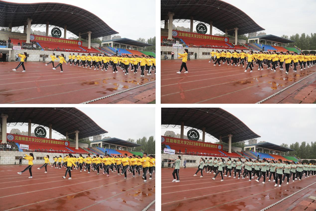 走军人之步伐,展青年学子风采。由200人组成的匕首操方阵,在《军中玫瑰》《钢铁洪流进行曲》歌声中,带来了匕首操展示。在大型团体操展示环节,伴随着校歌《点燃太阳》《相逢在沈师》的韵律节拍,22个学院“车轮滚滚”表演团队通过主席台,赢得观众阵阵喝彩,同时2023级全体新生进行了大型团体操展示,践行了学子们传承师大文化,弘扬师大精神的信念与决心。