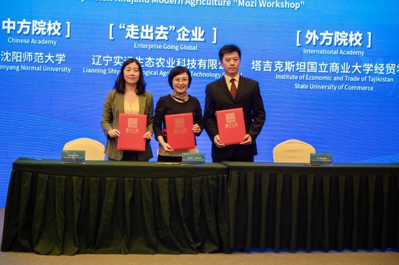 会上着重推出了辽宁“职教出海”办学品牌——“墨子工坊”建设项目,该项目旨在共建海外职业教育产业学院,更好满足“走出去”企业海外技术技能人才需求,通过技术技能人才培养和职业文化推广交流,助力当地经济社会发展。大会闭幕式上,高向辉副厅长对“墨子工坊”建设项目进行解读与推介,并举行首批10个“墨子工坊”建设项目合作签约仪式,必赢官网与辽宁实远生态农业科技有限公司、塔吉克斯坦国立商业大学经贸学院在前期友好合作的基础上,共同探讨并商定举办“塔吉克斯坦胡占德现代农业墨子工坊”。佟玉平副校长与合作方代表共同签署了三方合作协议,成为辽宁省首批10个“墨子工坊”建设项目之一。
