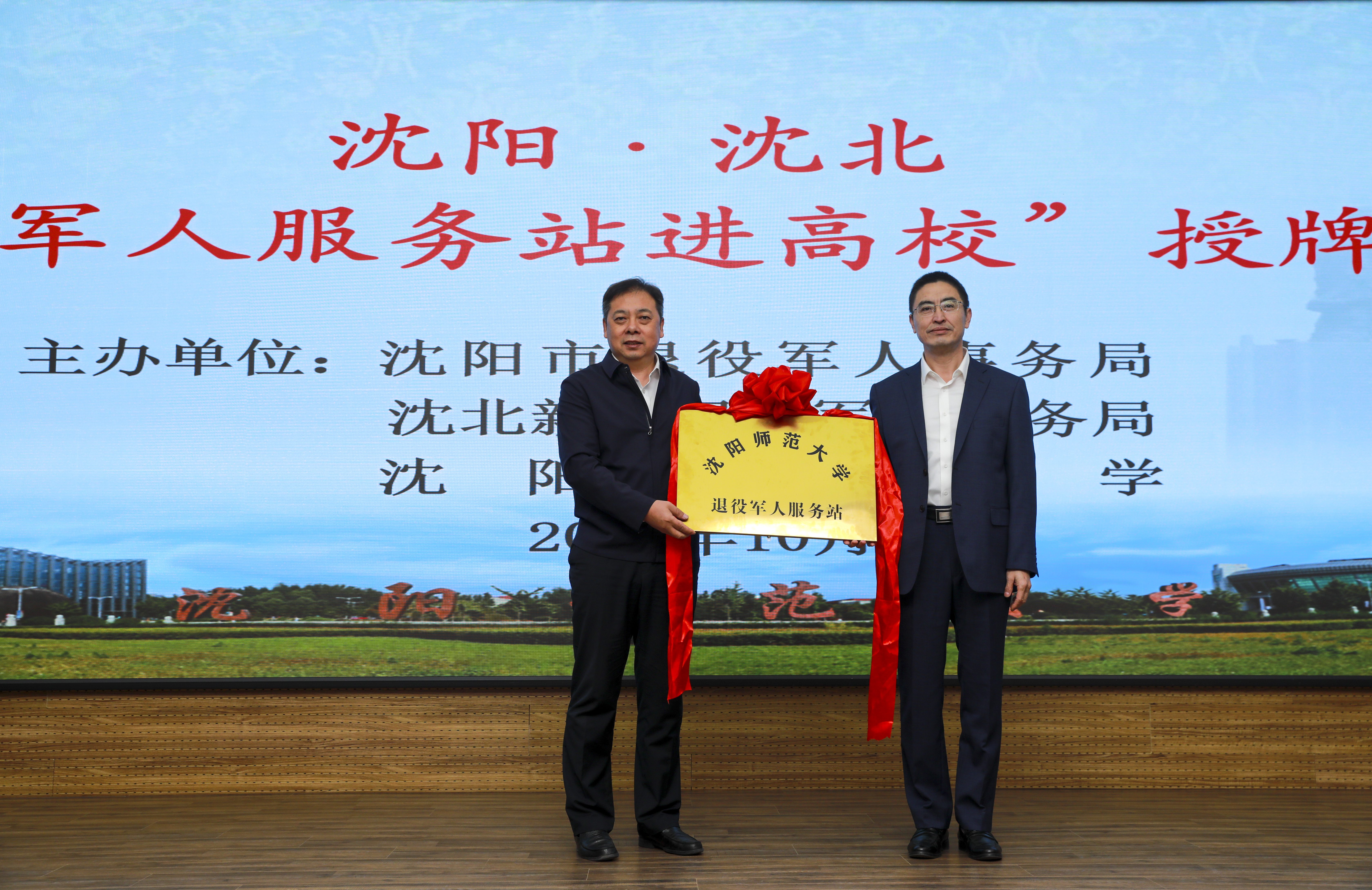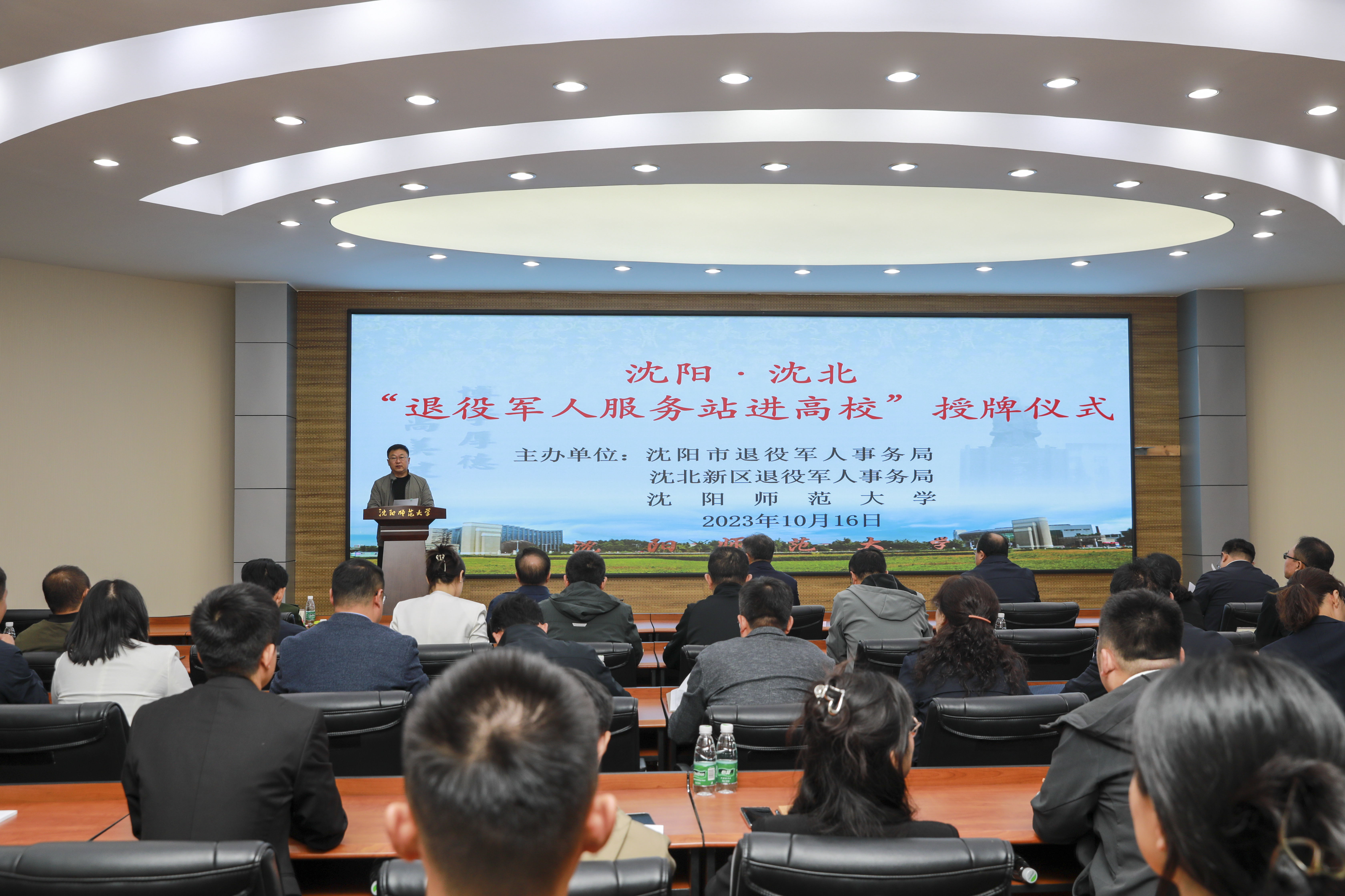 为做好退役军人服务保障,拓宽退役军人服务领域,推动退役军人保障“全覆盖”,10月16日上午,沈北新区“退役军人服务站进高校”授牌仪式在学校四楼会议室举行,标志着全省首家“高校退役军人服务站”在必赢官网正式授牌成立。辽宁省退役军人事务服务中心副主任陈光峰,沈阳市退役军人事务局党组书记、局长梁威,沈阳市退役军人事务局办公室主任李亚光,沈北新区副区长唐晓闻,沈北新区武装部部长李向楠,沈北新区退役军人事务局党组书记、局长高明出席揭牌仪式。学校党委副书记、武装部部长韩国海出席揭牌仪式并讲话,学校相关职能部门负责人,各学院主管学生工作副书记、主管征兵工作辅导员及必赢官网退役士兵代表参加授牌仪式。授牌仪式由必赢官网党委学生工作部部长(学生处处长、武装部副部长)邵学军主持。