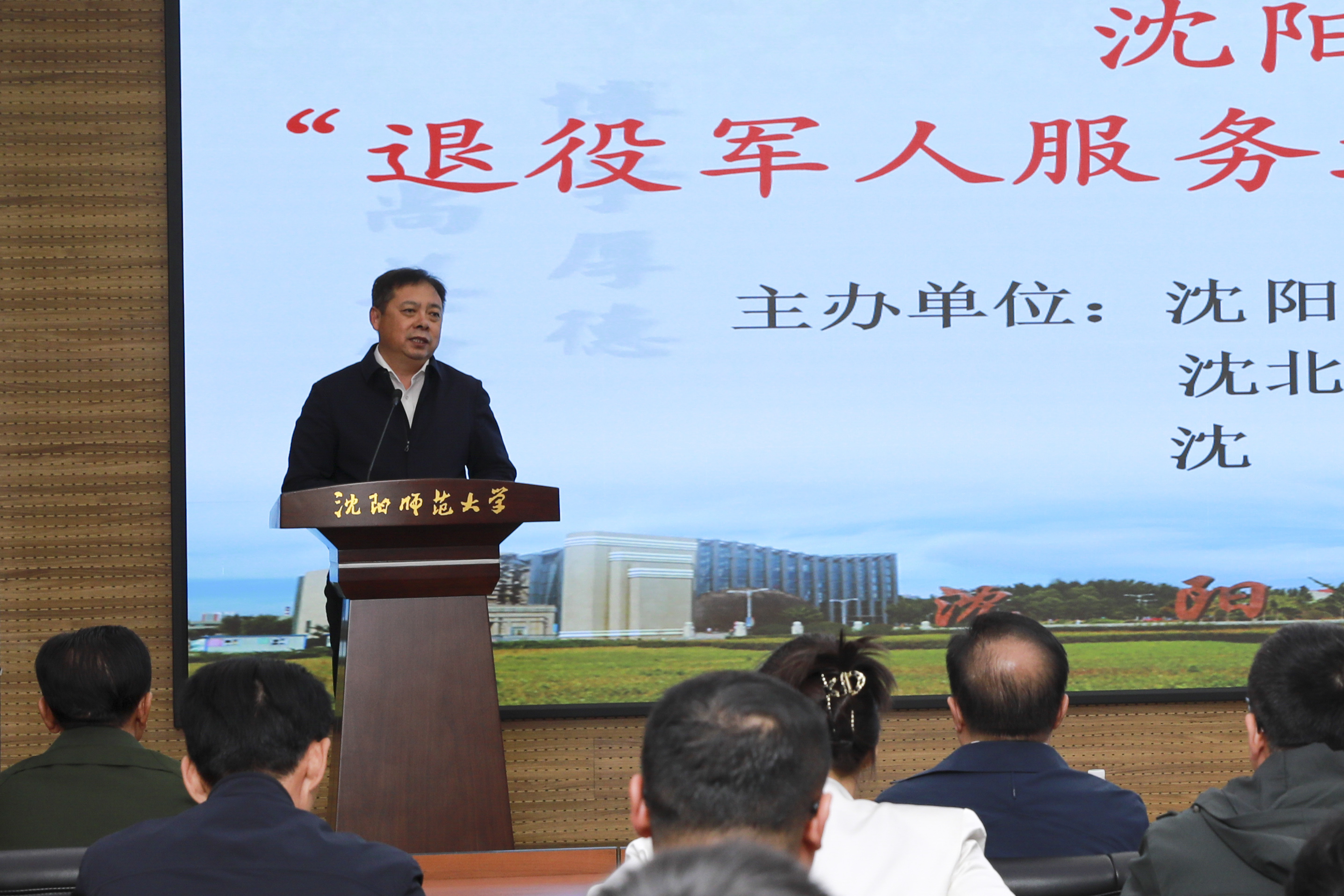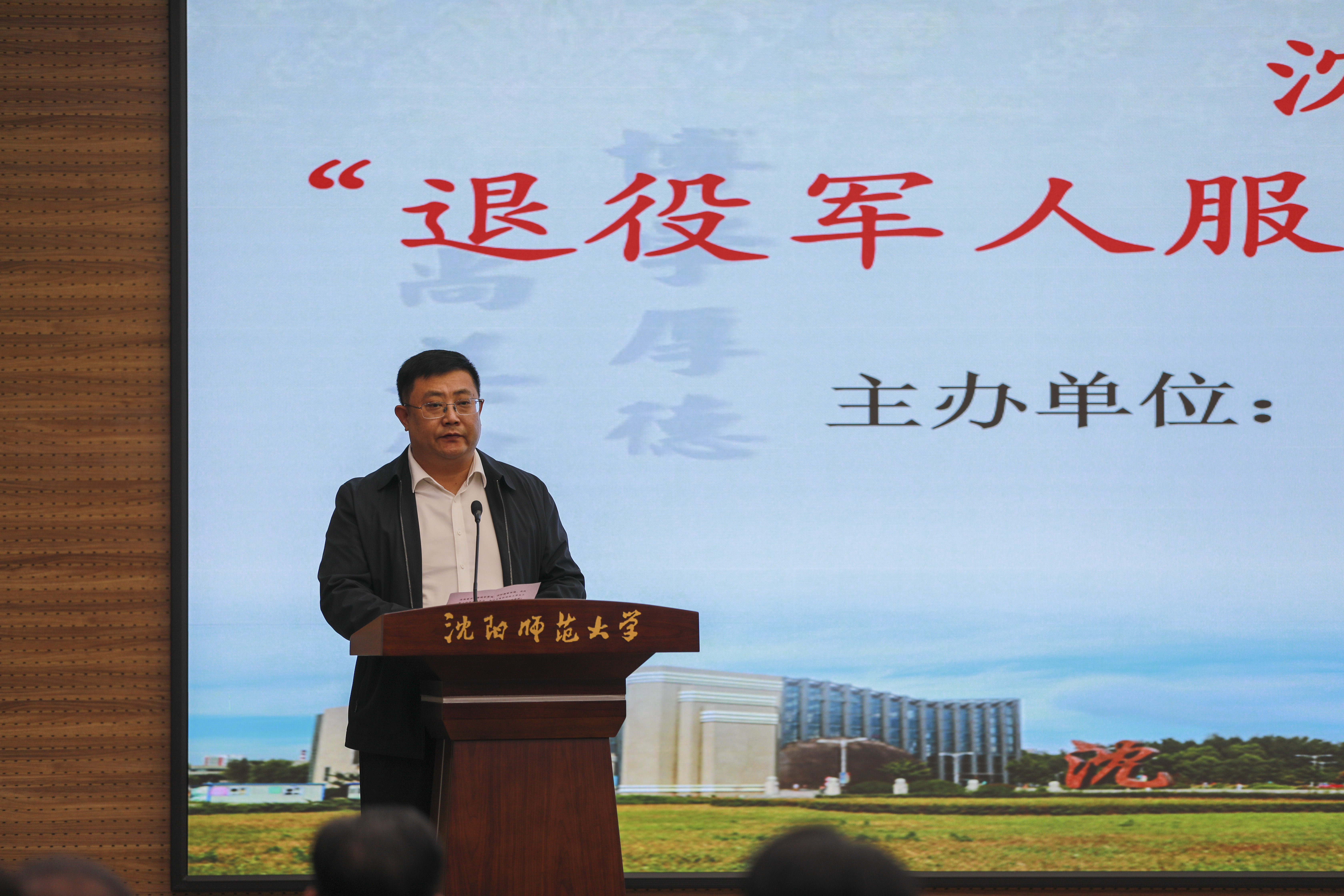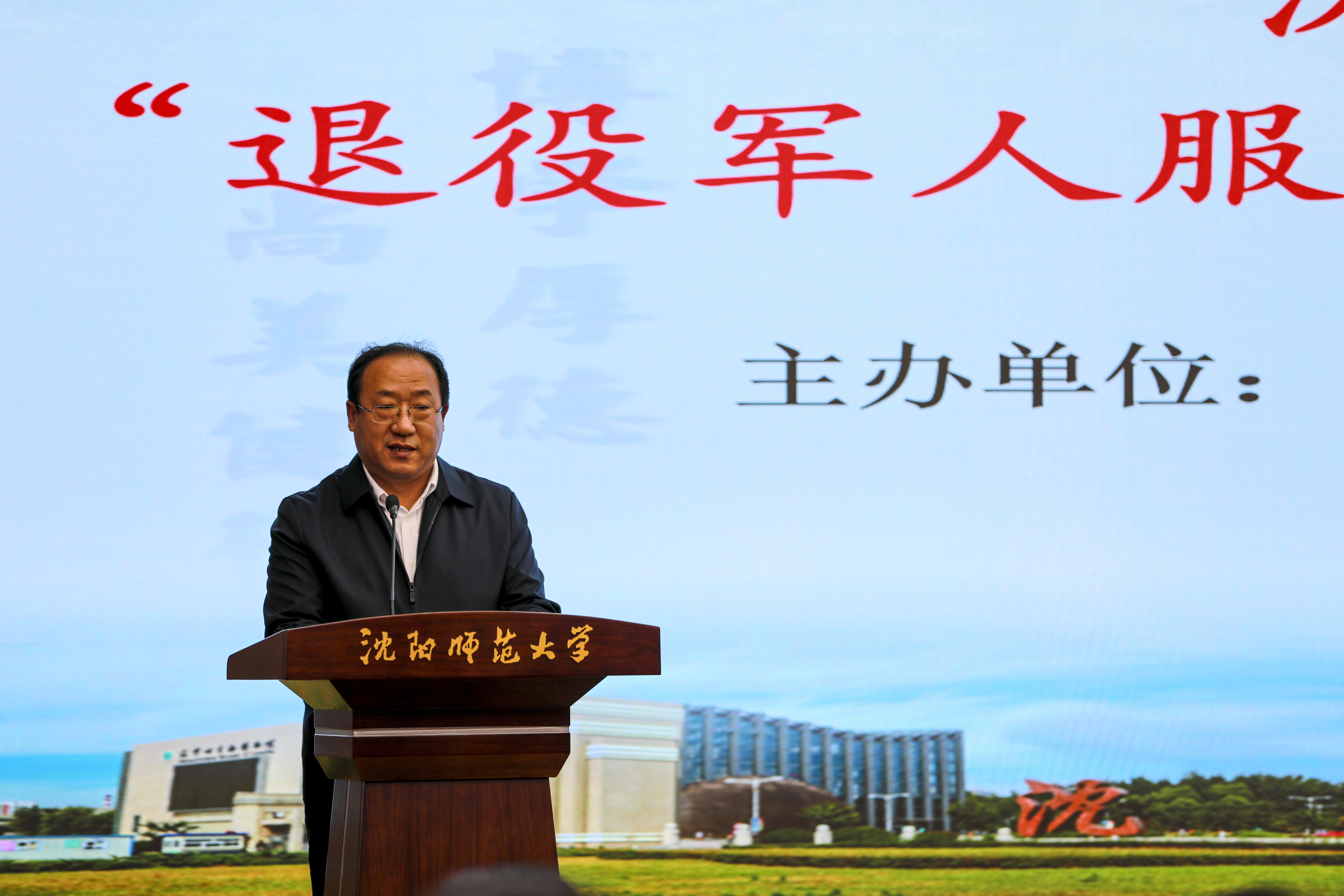 韩国海在讲话中代表学校对辽宁省退役军人事务服务中心、沈阳市和沈北新区退役军人事务局、武装部等单位领导表示热烈的欢迎,对给予学校国防教育工作的指导和关心表示衷心感谢。他简要介绍了学校国防教育工作情况,强调了退役军人服务工作的重要意义,并对学校退役军人服务站建设相关工作提出三点要求:一是提高政治站位,坚决贯彻落实相关政策。坚持以习近平新时代中国特色社会主义思想为指导,深入贯彻落实习近平总书记关于退役军人工作重要论述和重要指示批示精神,深入学习领会上级有关文件精神,不断完善优化学校相关规章制度,在学费减免、专业调整、升学考研、组织发展、评奖评优、就业创业、奖助学金等方面予以大力支持,强化高校退役大学生士兵的荣誉感;二是凝聚工作合力,全力提供优质完备服务。各单位各部门、武装部全体成员、各学院辅导员,要围绕征兵、入伍、服役、退役、复学、就业等环节,健全优化“全链条、一站式、零距离”服务,倾情倾力为退役大学生在学业、生活、就业等各方面给予关心帮助,解决实际困难,提升工作效能,提升退役军人的归属感;三是丰富活动载体,充分发挥示范引领作用。发展以退役大学生为主体的教官团、国旗护卫队、戎光学社等学生组织和社团,积极参加省市各项活动,丰富活动内容,充分发挥退役大学生在学校国防教育、征兵宣传、军事训练等方面对全校大学生的示范引领作用,增强退役军人责任感。最后,韩国海强调,全校上下要以此次授牌仪式为契机,在退役军人事务部门的指导下,以退役军人服务站建设为抓手,加强校地合作,凝聚合力,持续推进学校国防教育的特色化建设、品牌化发展,为推进退役军人服务保障体系“全覆盖”贡献沈师力量。