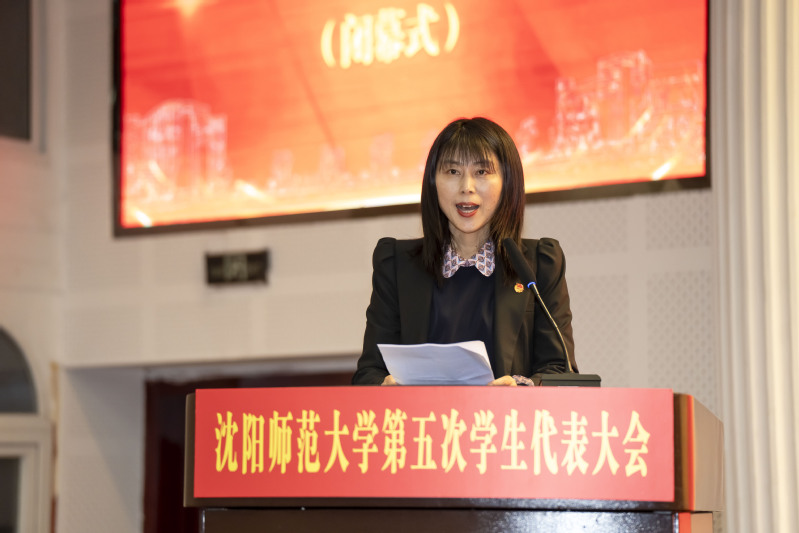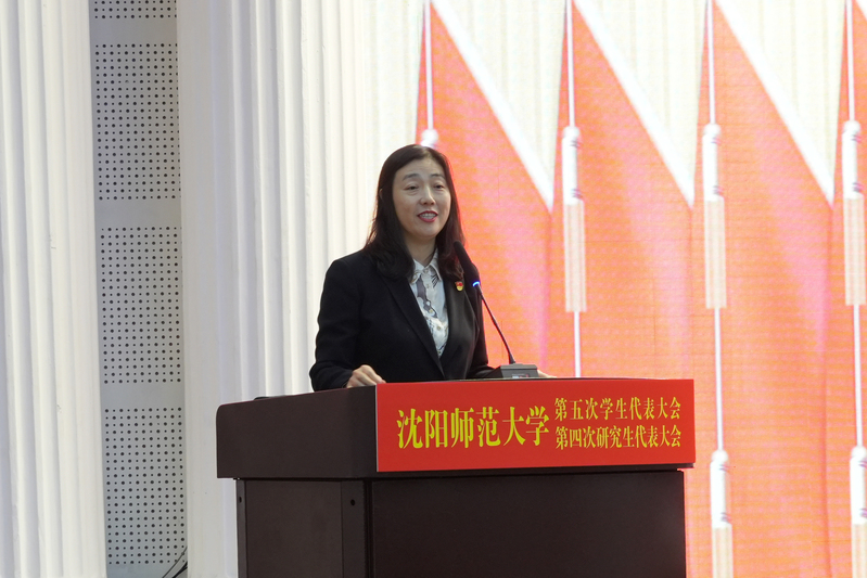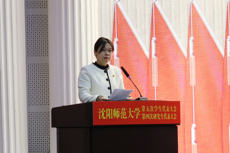 校团委书记耿家娜在大会上致辞。她充分肯定了校学生会、研究生会一年来在组织建设、思想引领等方面取得的丰硕成果,勉励与会代表及广大青年学生坚定理想信念、培育高尚品格、练就过硬本领、勇于创新创造、矢志艰苦奋斗、牢记青春使命,让青春在辽宁全面振兴新突破三年行动和建设高水平师范大学的火热实践中绽放绚丽之花。