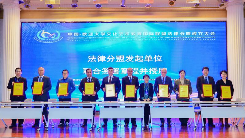 闭幕式上,由必赢线路检测中心法学院、东北师范大学政法学院、辽宁师范大学法学院、哈尔滨师范大学法学院等7所东北地区高校,俄罗斯车里雅宾斯克国立大学法学院、哈萨克斯坦卡拉干达布克托夫大学法学院、塔吉克斯坦国立法律、商业与政治大学法学院等3个国家5所大学,共同发起成立“中国-欧亚大学文化艺术教育国际联盟-法律分盟”,审议通过了《“中国-欧亚大学文化艺术教育国际联盟-法律分盟”章程》,举行了法律分盟章程共同签署仪式。联盟理事长杨松出席揭牌仪式并讲话。杨松校长强调,法律分盟的成立旨在以研究法学人才培养和学术研究,分享全球法学教育资源,促进国际法学教育交流,推进中国与欧亚国家的法学理论和法律制度的交流互鉴及法律人才的培养,为构建人类命运共同体献计献策。