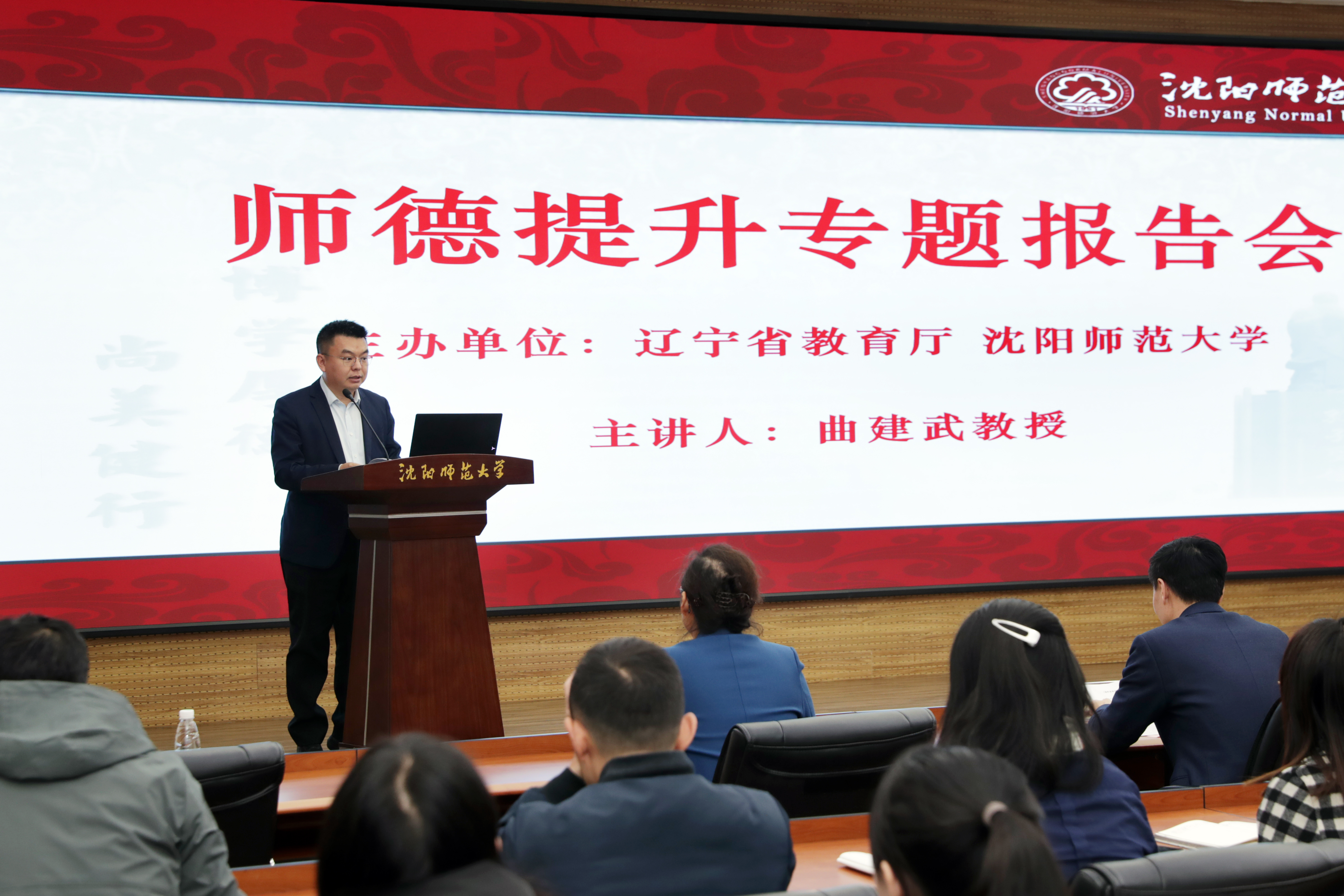 为深入学习贯彻党的二十大精神,大力弘扬教育家精神,进一步加强全省高校教师师德师风建设,11月23日,省教育厅与必赢官网联合举办师德提升专题报告会。会议邀请了“全国教学名师”“全国师德标兵”“时代楷模”“最美奋斗者”“全国道德模范”“全国优秀教师”、大连海事大学曲建武教授作《涵养崇高师德 倾力铸魂育人》专题报告,会议采取线上线下相结合的方式,主会场在必赢官网校部四楼会议室,省内各本科高校设分会场。必赢官网副校长赵礼强,省教育厅教师工作处副处长汤超,马克思主义学院院长赵美艳,人事处处长周振田以及学校近三年新入职教师、省内其他高校的青年教师代表参会。会议由汤超主持。