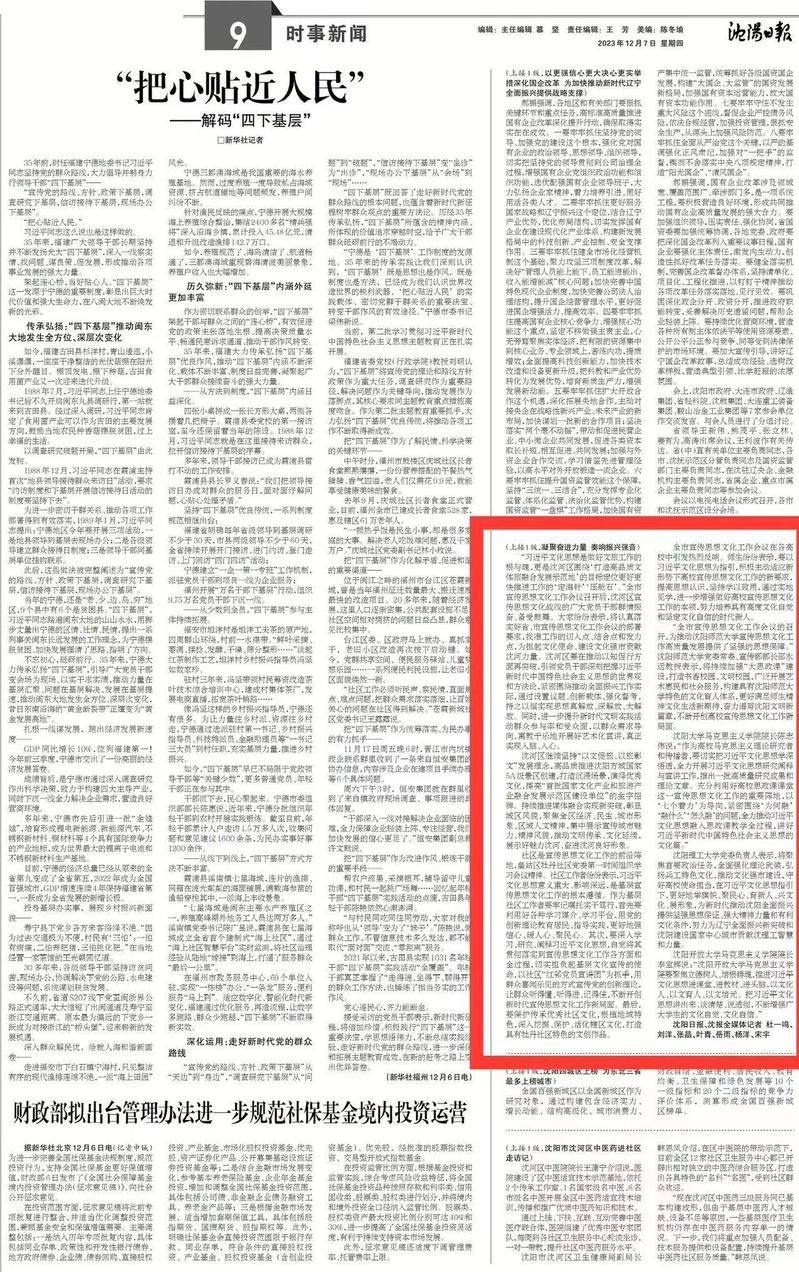 近日,《沈阳日报》以《全市宣传思想文化工作会议引发热烈反响》为题,就全市各战线对沈阳市宣传思想文化工作会议精神的学习落实进行了宣传报道,全文如下: