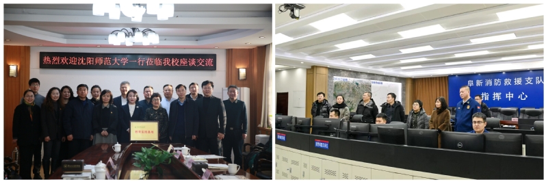 期间,杨松校长一行到阜新高等专科学校调研考察,与阜新高等专科学校党委书记、政教系82级校友任志伟共同为教育实践基地揭牌;到阜新市消防救援支队走访,与阜新市消防救援支队党委书记、政治委员、中文系95级校友谢鹏远进行了交流。