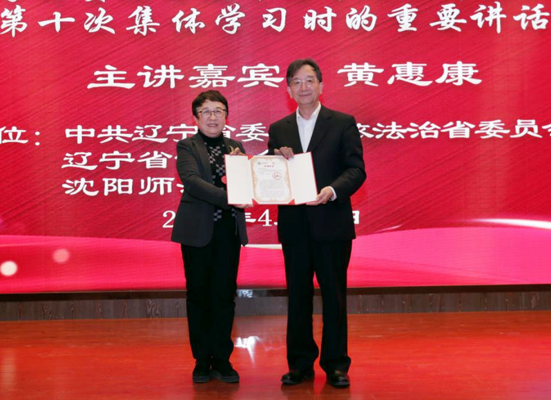 专题学术报告结束后,杨松校长为黄惠康教授颁发必赢线路检测中心“车向忱大讲堂”纪念证书,她感谢黄惠康教授与我省法治领域实务专家、必赢官网师生交流思想、分享经验,与沈师师生汇聚智慧力量、共话沈师发展,助力沈师在服务国家战略和辽宁全面振兴中展现更大的担当和作为。