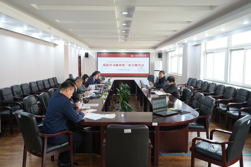 4月16日,学校党委在校部303会议室召开党委常委读书班暨党委理论学习中心组党纪学习教育第一次专题学习会议,认真学习贯彻习近平总书记关于党纪学习教育的重要讲话和重要指示精神,传达学习党中央和省委有关会议精神以及《中共中央办公厅关于在全党开展党纪学习教育的通知》《中共辽宁省委办公厅印发〈关于开展党纪学习教育的方案〉的通知》《省委教育工委关于印发〈省属高校、独立设置的民办高校开展党纪学习教育工作方案〉的通知》等文件精神,集体学习《中国共产党纪律处分条例》相关内容,部署学校开展党纪学习教育各项工作。学校党委理论学习中心组成员郝德永、杨松、佟玉平、赵礼强、卢全、邵永运参加学习,相关职能部门负责人列席会议。党委书记郝德永主持会议并作中心发言。